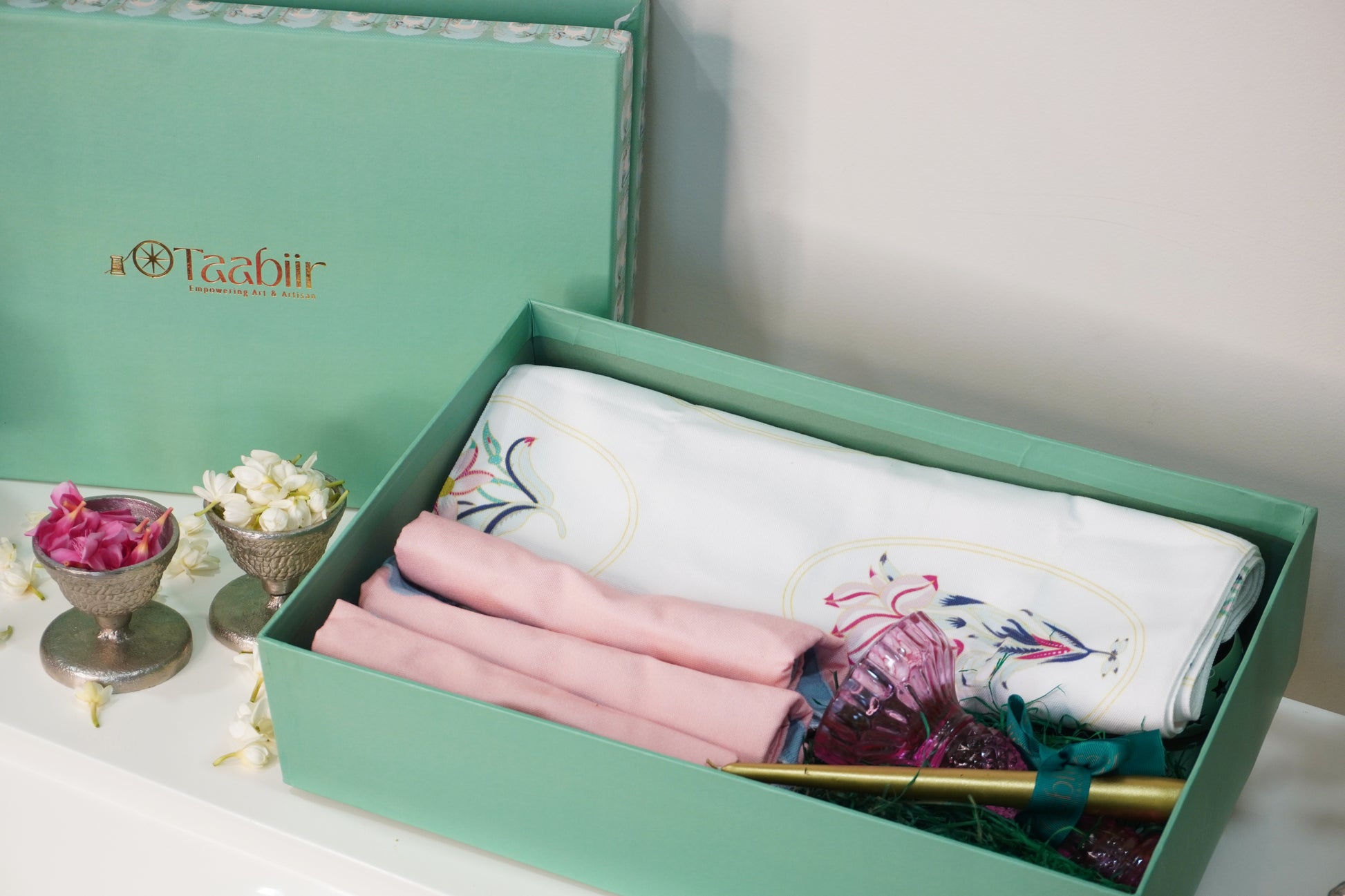 A harmonious blend of soft hues and exquisite details, this set is perfect for those who appreciate understated elegance and charm during festive occasions.