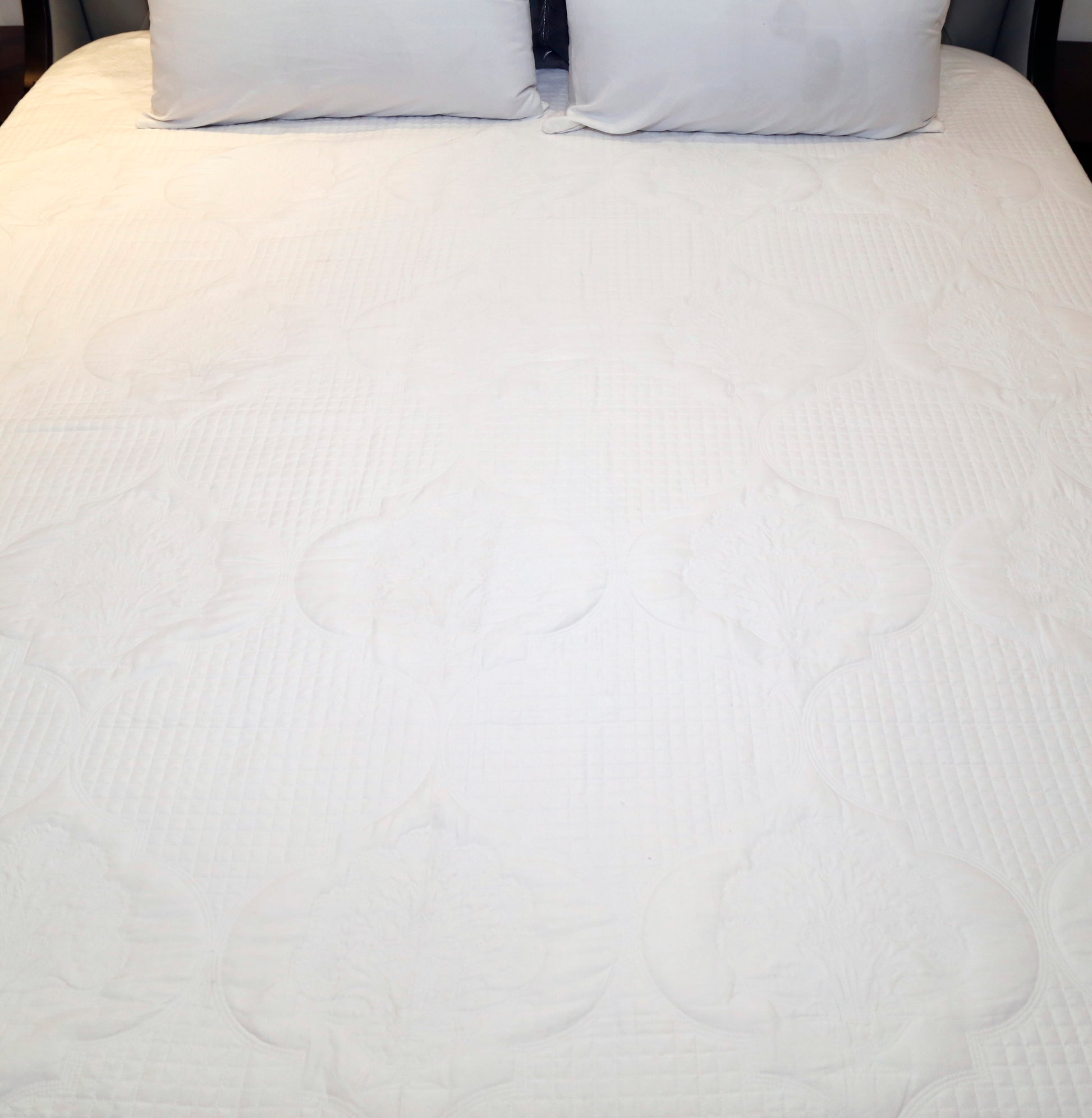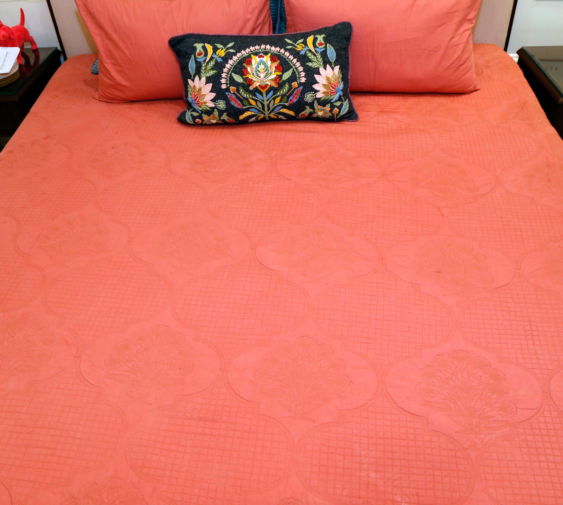 Moonlit florals ( EMBROIDED BEDCOVER WITH 2 PLAIN PILLOW COVERS )