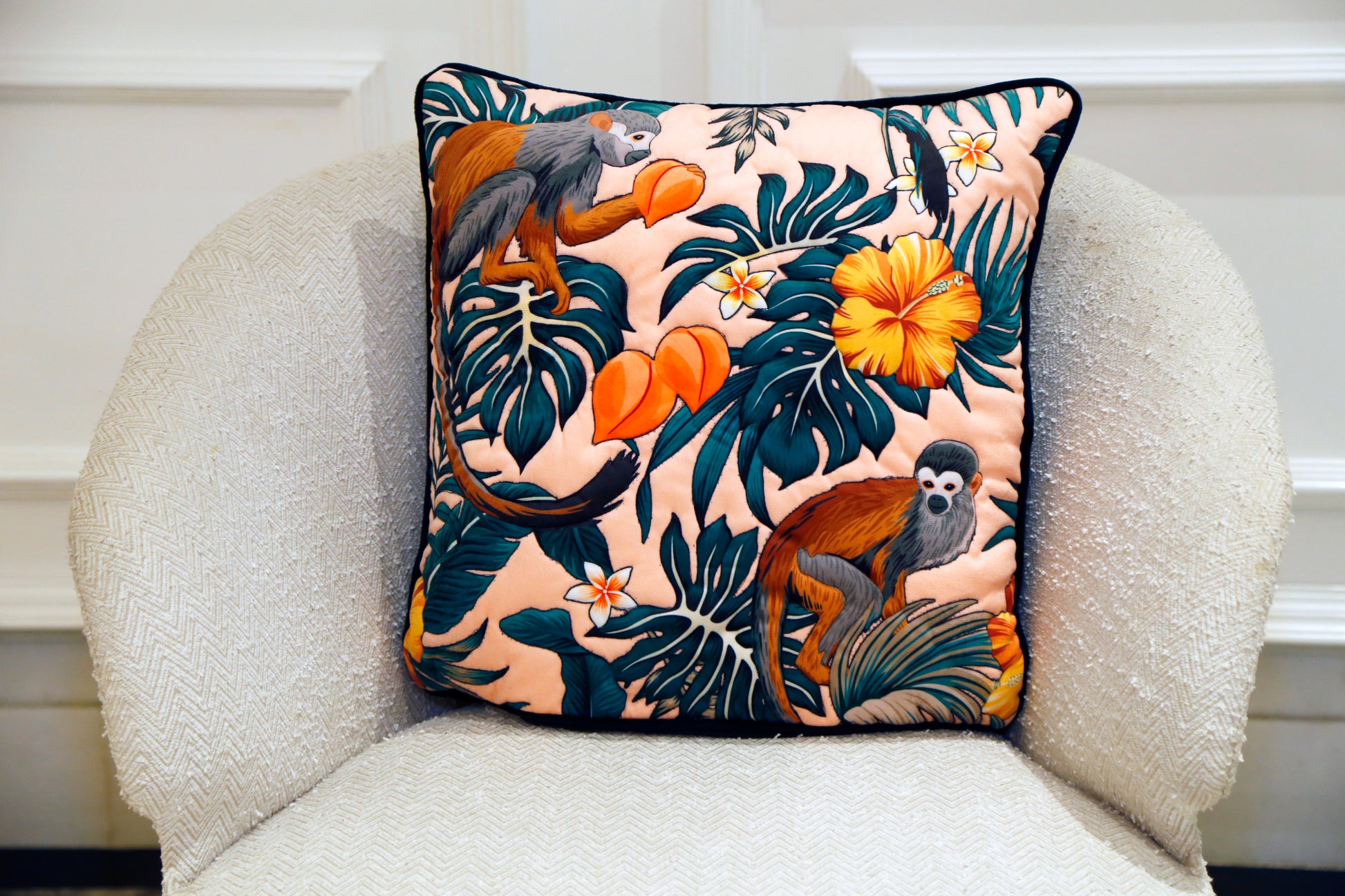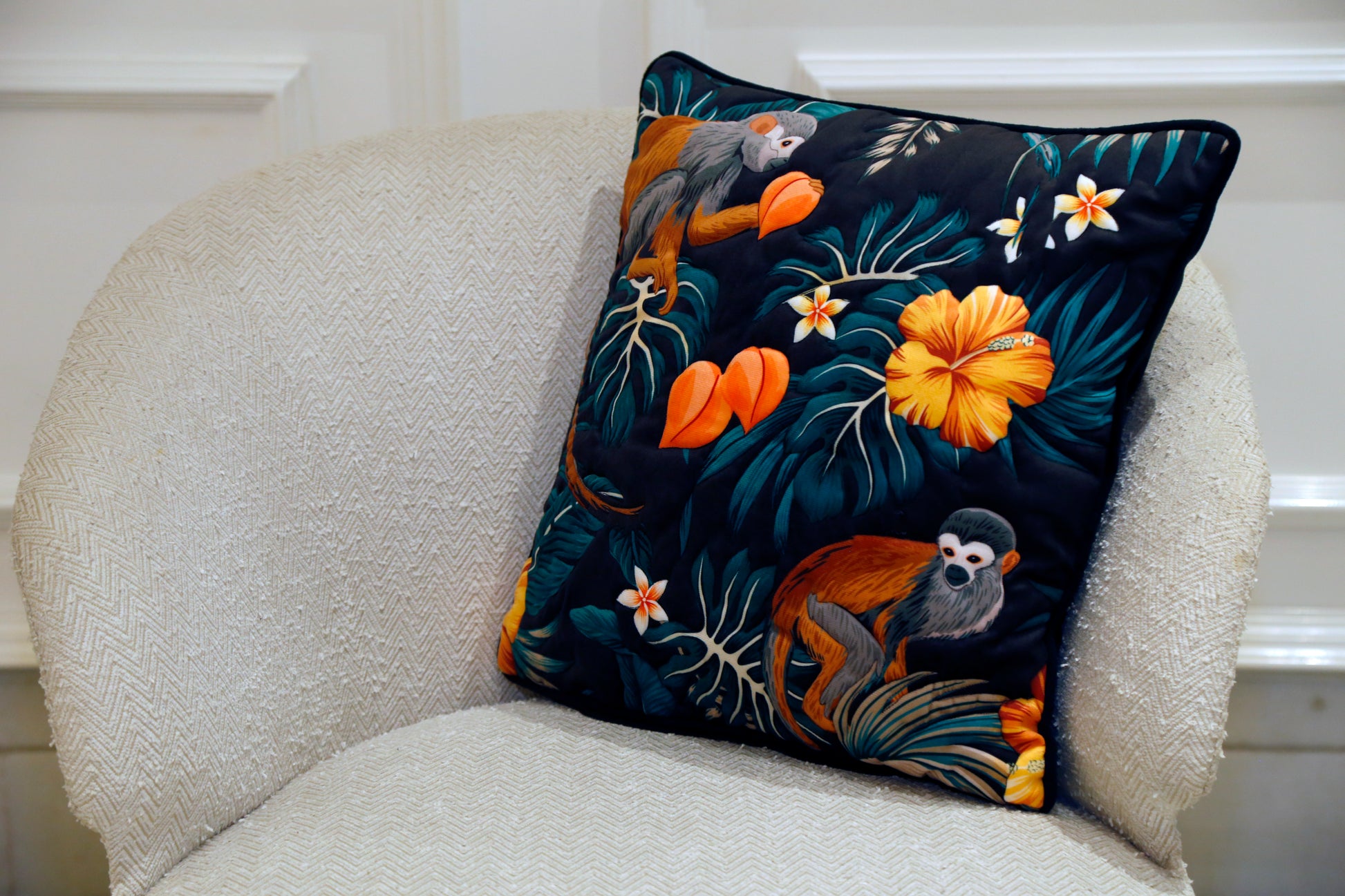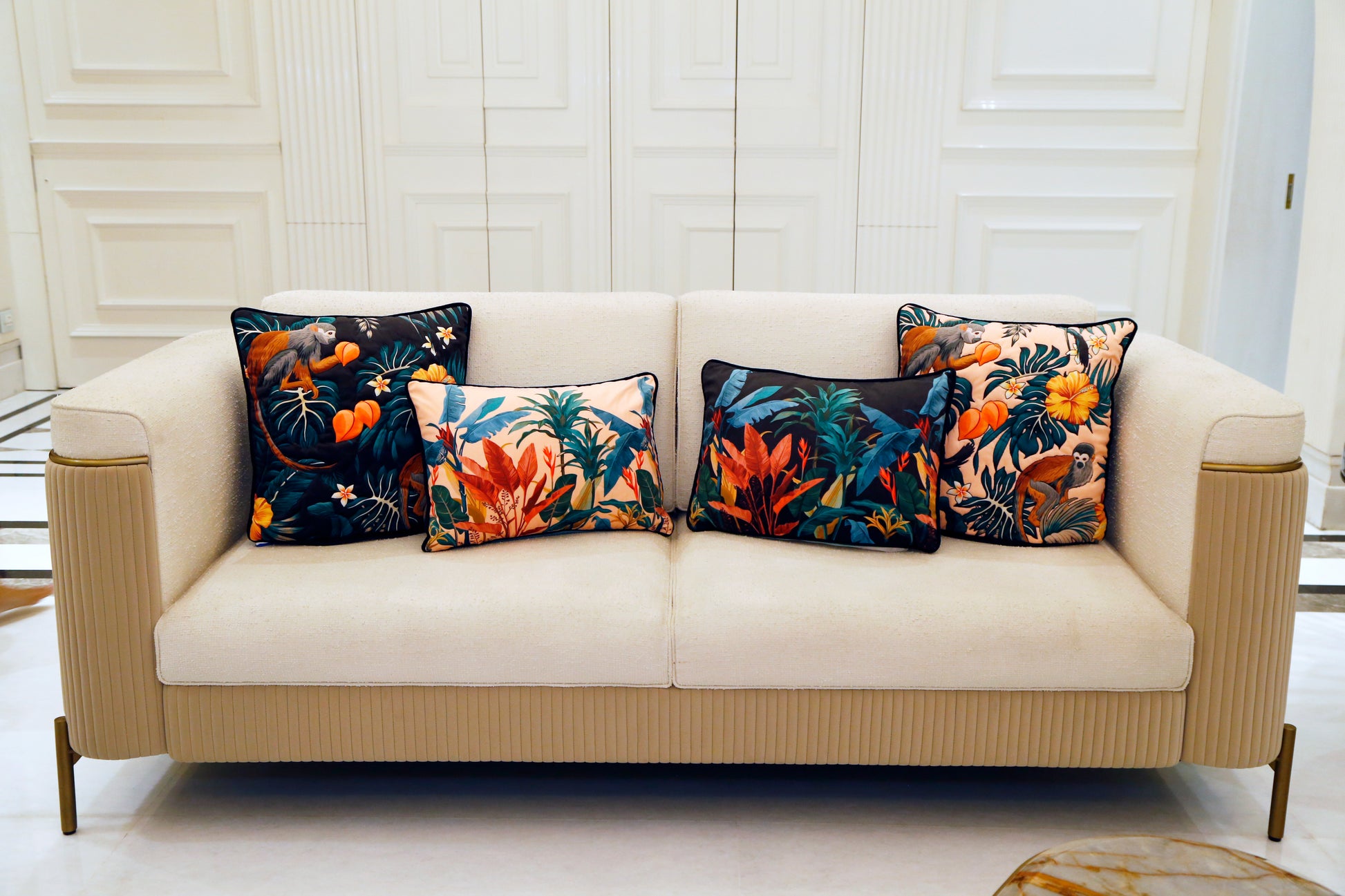 An ornate cushion featuring intricate circular embroidery framed with paisley and leaf motifs. Its regal detailing and artisanal finish make it a perfect statement piece for elegant interiors
