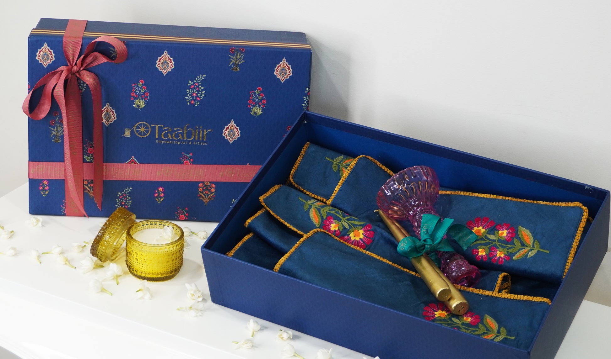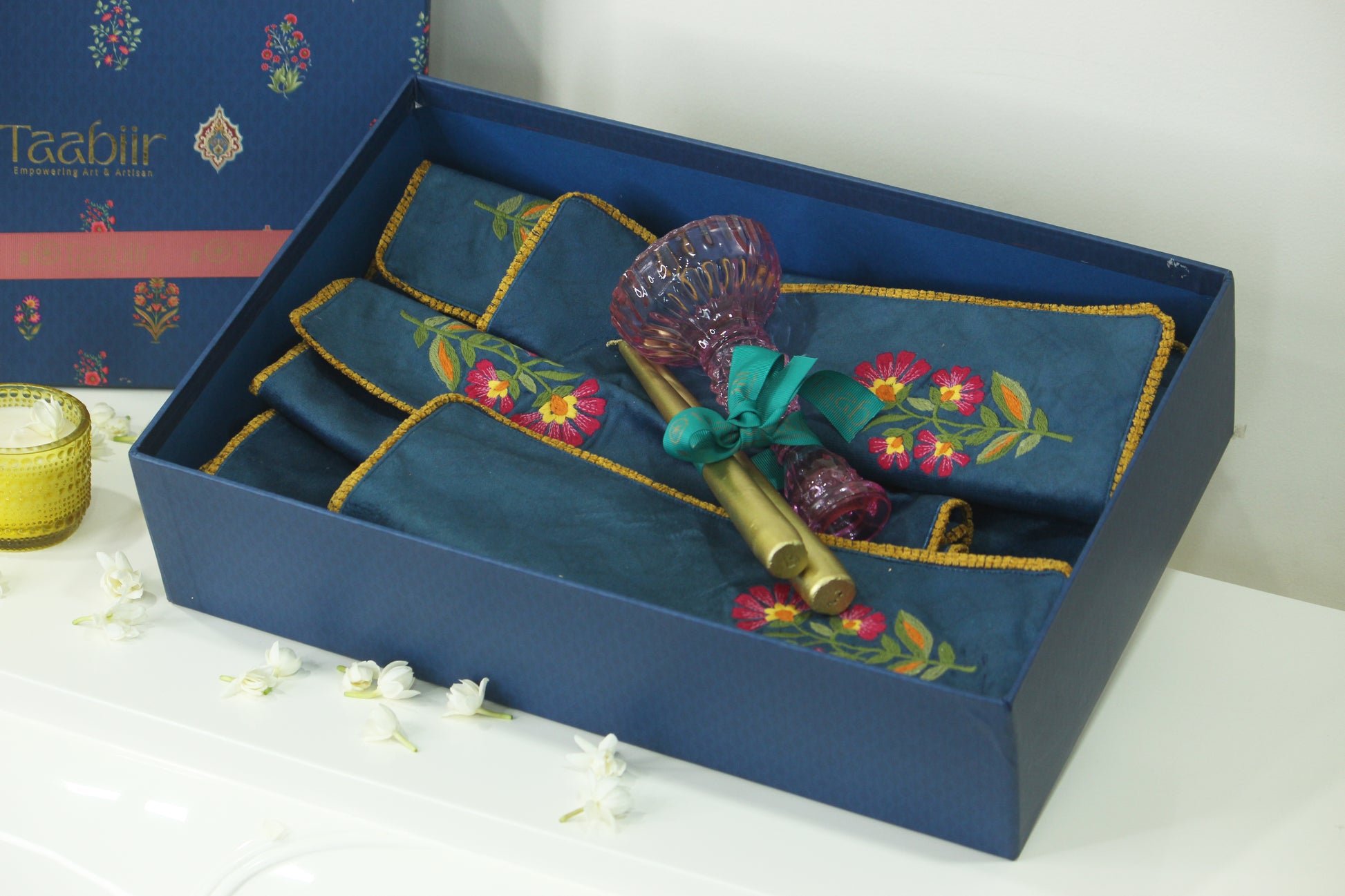 This beautifully crafted gift box features a collection of luxurious items that add elegance and charm to any festive setting: