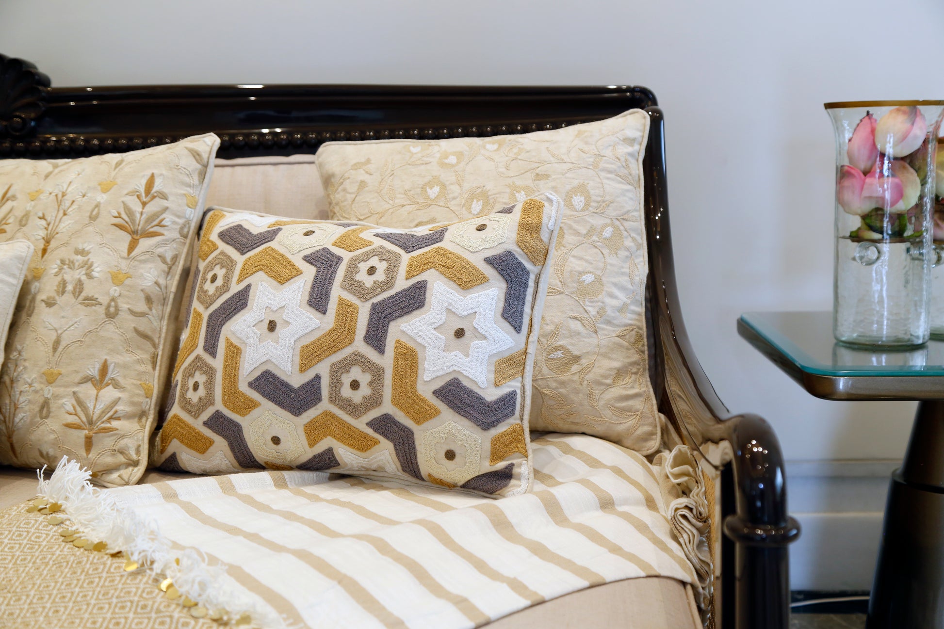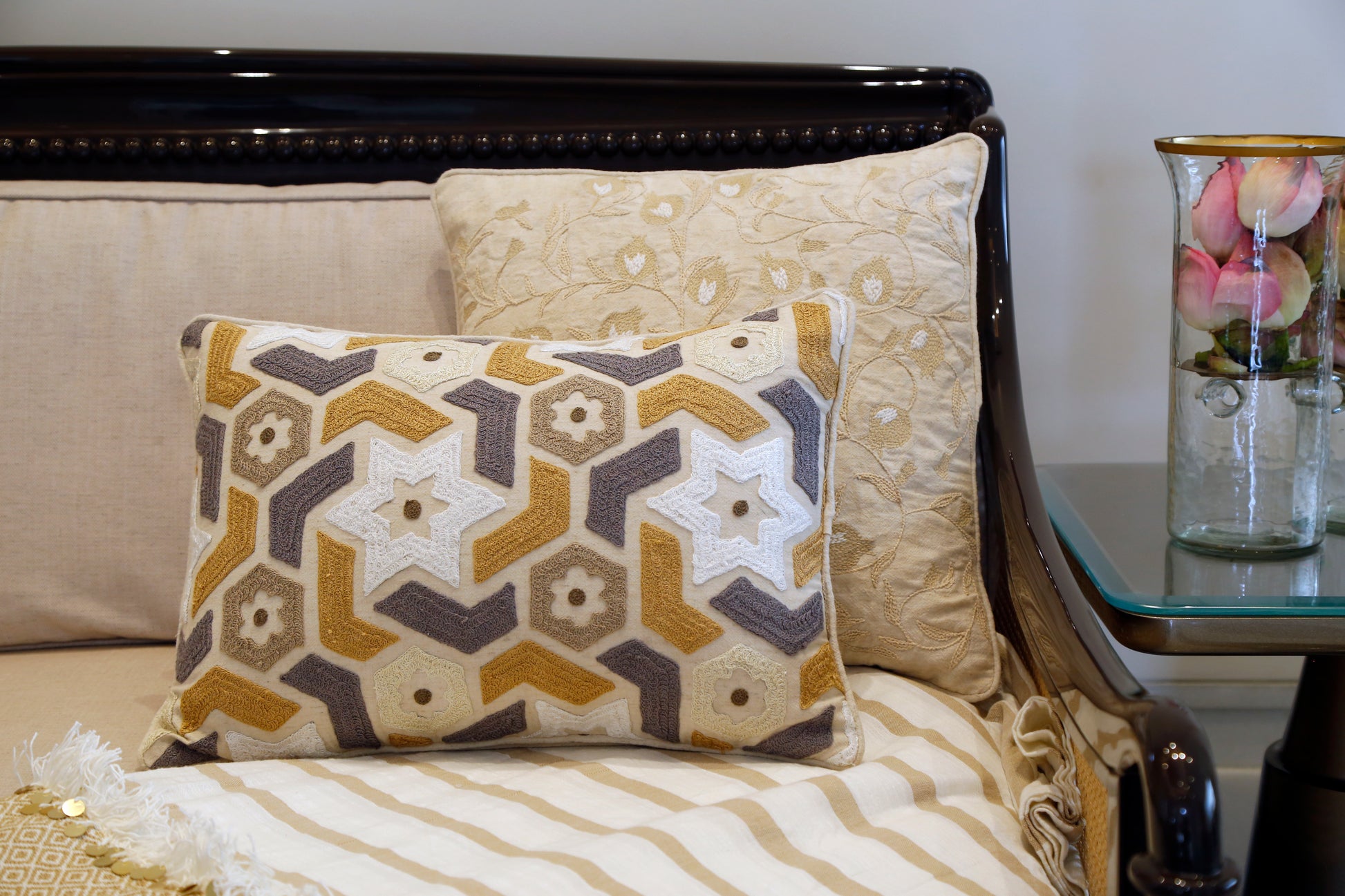 A best embroidery pillow with white base and luxurious color Embroidery, so cheerful and bright, With machine embroidery of Cushion , a stunning sight, The intricate details, adding depth and charm,Perfect for adding a touch of beauty and style to your bedroom decor.