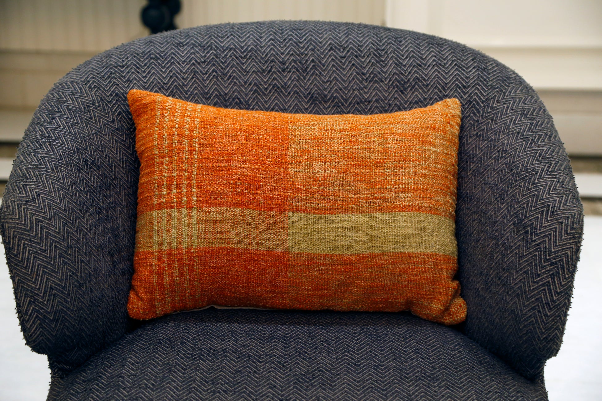 Handwoven cushion featuring a textured check design that blends artisanal charm with modern comfort. A perfect accent to add warmth and character to any living space.